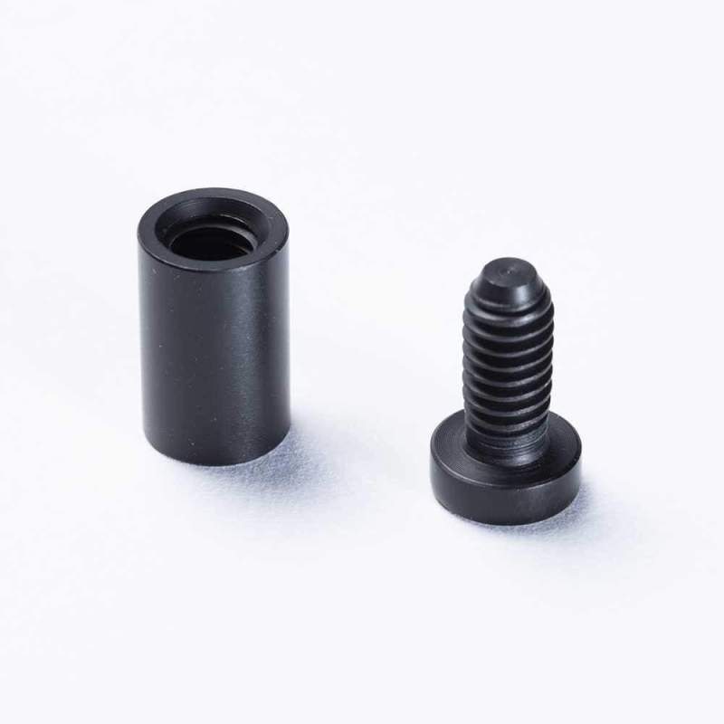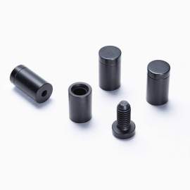 Nuestros embellecedores negros destacan por su fácil colocación. Están compuestos por dos piezas: la parte cilíndrica con un agujero trasero para introducir un tornillo, el cual irá a un taco y a la pared; y la parte redonda con rosca para introducirlo en la otra parte. Gracias a este mecanismo es realmente fácil que puedas anclar a la pared tu directorio de metacrilato. Son de 13x19mm, lo que les aportará elegancia a la par que discreción a tus placas gracias a su efecto mate.